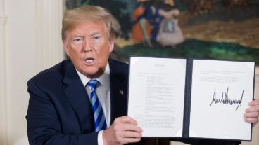 Trump firmó una declaración que, en sus palabras, "empieza a reanudar las sanciones nucleares de Estados Unidos al régimen iraní", aunque, según precisó el Departamento del Tesoro, algunas de ellas no entrarán en vigor hasta que transcurran periodos de entre 90 y 180 días.