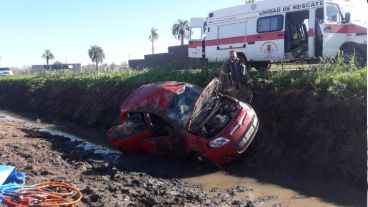 La mujer de 26 años habría sido encerrada por otro automovilista y despistado hacia la banquina. Bomberos Voluntarios de Roldán intervinieron para liberar del coche y los médicos del Sies ordenaron su traslado aéreo al sanatorio Parque.