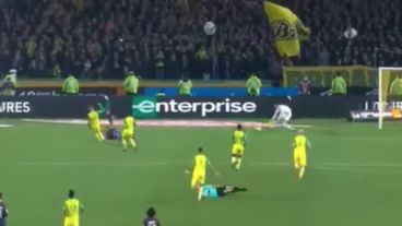 Un árbitro le tiró una patada de atrás a un jugador y no contento con eso lo expulsó. Fue en Nantes, en un partido entre ese equipo y el PSG que se definió a favor del equipo de París, con gol del rosarino Angel Di María.