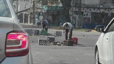 La calzada quedó reducida por un largo rato, hasta que lograron retirar los vidrios de la calle.