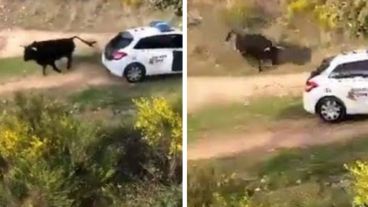 Una persona captó en un video el momento en el que se producía una de esas embestidas. Las imágenes fueron luego compartidas por la cuenta de la Guardia Civil: "Así nos recibe el toro", comentaron.