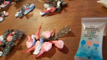 Los agentes detectaron que en esa vivienda, en la que se exhibían fotos familiares en portaretratos, existía una falsa pared. Un hueco en la estructura tapada por una placa de durlock contenía dos cajas de metal con droga y medio millón de pesos.