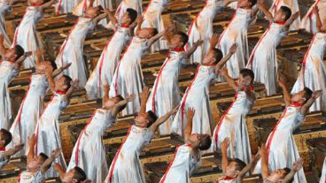 La música popular china saludaba la entrada al recinto de periodistas y espectadores, mientras cientos de artistas se movían en el centro del estadio dibujando círculos espectaculares. Los "teloneros" habían trabajado sus movimientos con la misma disciplina e ilusión que los actores principales.