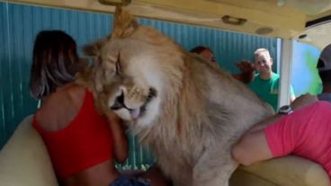 En las imágenes se puede ver como la leona se acercó al coche como si quisiera conocer mejor a los pasajeros. Y ahí fue cuando comenzó su performance. Primero Filia, como se la conoce, decidió hacerse cargo de la conducción: empujó al conductor y tomó su asiento. Luego saltó a los asientos de atrás donde estaban los visitantes del parque.