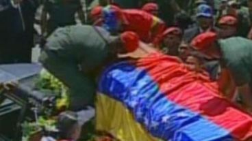 Antes del inicio del traslado, se rezó un breve responso en presencia de la madre de Chávez, Elena Frías, en el mismo Hospital Militar donde el líder bolivariano murió ayer por la tarde, y luego el cajón, cubierto con la bandera venezolana, fue colocado sobre un vehículo rodeado de flores.