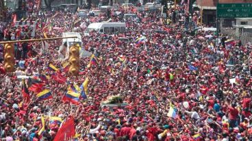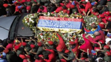 El reccorido con el féretro del jefe de Estado llegó a su destino tras un recorrido que inundó las calles de Caracas de miles de simpatizantes vestidos del tradicional rojo del chavismo y con banderas de Venezuela.