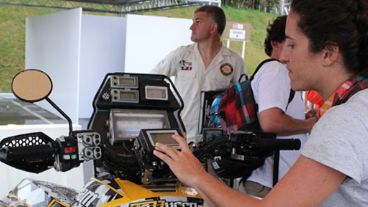 De todos modos, no deja de divertirse con algunos términos que escucha por primera vez. “Enchufado; me encanta esa palabra”, le dice al piloto argentino de cuatriciclo, Pablo Bustamante, mientras controla su GPS.