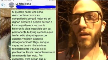 Seis años después de terminar la secundaria, Agustín pudo decirle lo que sentía a esos ex compañeros agresivos vía Whatsapp. Recibió un mensaje en su celular y lo agregaron a un grupo “Falsa cena” para invitarlo a participar de un reencuentro.