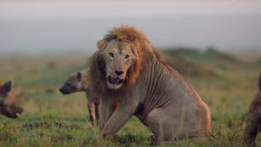 La serie documental de la BBC titulada Dynasties mostró impactantes imágenes de un león que cruzó un arrojo y fue rodeado y atacado por una veintena de hienas.
