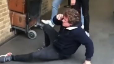 Un fan de los libros y películas de Harry Potter intentó imitar a su ídolo y terminó con un golpazo. En una estación de Londres, quiso traspasar la conocida plataforma 9 3/4, por que la atraviesan los estudiantes para tomarse el Expreso de Hogwarts, y chocó contra pared. Todo quedó grabado.