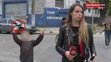Cuando la cronista y su camarógrafo subían al auto, un niño le apuntó con una pistola y le gritó: “¿Sabés quién quemó al policía? Fui yo”. Aparentemente el arma era de juguete.