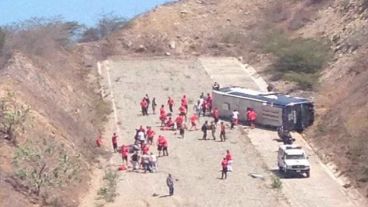 El micro que trasladaba al plantel de Huracán volcó en la rampa de frenado ubicada al costado de una autopista de Caracas, donde este martes a la noche el equipo disputó un partido de la Copa Libertadores de América.