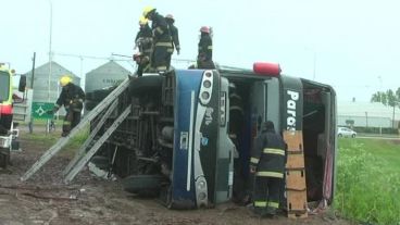 El accidente se produjo a las 7.10 cuando, por motivos que se investigan, un micro de la empresa Paraná Medio que habría sido contratado para un viaje particular pasó de largo al llegar a la rotonda de ingreso del pueblo ubicado a 15 kilómetros de la localidad de Alberti, produciéndose el vuelco.