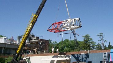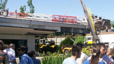 Mientras los técnicos hacían milagros para que Radio 2 estuviera en el aire y el canal pueda volver a transmitir en poco tiempo –a la mañana ya había una señal de emergencia que se podía volver a través de los cables de la región–, un grupo de operarios con una grúa retiraba la antena que había quedado acostada sobre los techos del edificio principal.