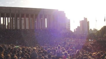 Después de un parate ideal para acostarse una siesta, las celebraciones por el Día de la Bandera continuaron este martes en el mismísimo Monumento y a toda música. Las cuatro de la tarde era el horario para que León Gieco salga a brindar su música a las más de diez mil personas que se amucharon en las escalinatas, pero incluso un par de minutos antes de esa hora, el tradicional cantautor ya comenzó a rasgar su guitarra bajo el sol rosarino. El espectáculo, organizado por la Municipalidad y con entrada libre y gratuita, llamó la atención por la enorme cantidad de gente que se llegó a la explanada bajo la célebre torre. Si bien el clima acompañó, el hecho de que haya sido un día laborable –el feriado se pasó al lunes 19– transformó en sorpresa la magnitud de la convocatoria, teniendo en cuenta también que durante los actos de la mañana no se vio una gran concurrencia. En familia o con amigos, el público se deleitó y cantó junto a Gieco sus más conocidos éxitos, siendo "En el país de la libertad" el que más despertó a chicos y grandes, que lo cantaron de punta a punta.