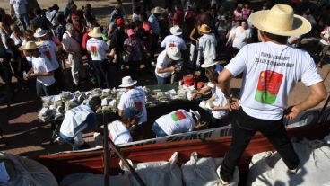 Elva, una señora que recibió un paquete de yerba, dijo a Télam que "estamos con ellos, hay que prestarles atención, es gente que labura de verdad".