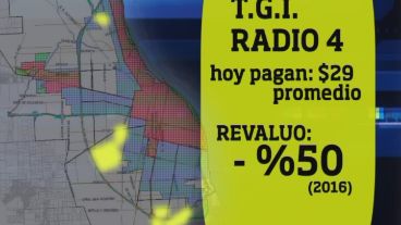 -Radio 4 (puntos en extremos del mapa rosarino, los más emprobrecidos), que también tendrían una suba menor al 50 por ciento; hoy reciben la boleta de la TGI en el orden de los 29 pesos.
