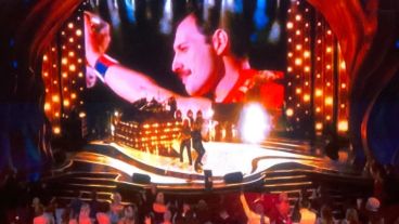 Mientras, en la pantalla trasera, se mostraban imágenes de Freddie Mercury.