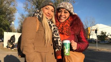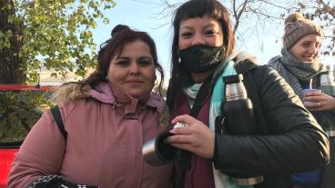 Debido al frío de ayer, algo más amable hoy, muchos amenizaron la espera con mate, café caliente y alguna facturita. Y algunos también aprovecharon la espera para calentar cuerdas vocales y ensayar.