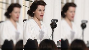 En las fotos, Foy aparece vestida con un traje blanco y un collar de perlas muy similar a los que la reina llevaba en 1947, mientras daba un discurso por radio desde Sudáfrica con motivo de su 21 cumpleaños.