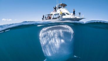 Un joven de 26 que trabaja para National Geographic tomó una fotografía que da la vuelta al mundo: un tiburón de 12 metros y 20 toneladas de peso aproximándose a un pequeño barco de turistas.