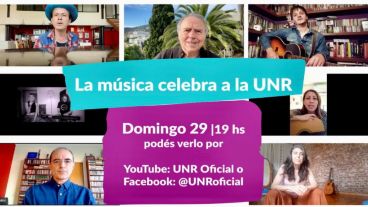 La música celebra a la UNR se podrá ver este domingo a las 19 horas en 5RTV y en las redes oficiales de la UNR: Facebook y YouTube de la Universidad.