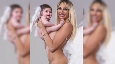 En la serie de imágenes que publicó Caras, Vicky posa desnuda y con alas de peluche (que también luce el bebé).