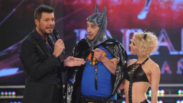 El humorista llegó a la pista disfrazado de Bati-Superman, una cruza de los trajes de los dos súper héroes y, después una previa entre cuentos y humor, bailó junto a Melina Greco “Hasta abajo”, de Tiburón Valdez.