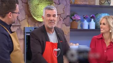 Entonces, la anfitriona le dio el regalo que la producción le había preparado: un delantal con los colores de Colón.