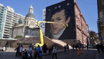 “Tiene 25 metros de alto por 20 de ancho. Lo que se destaca, más allá de lo enorme de la pared, es el sitio, cómo mira al río y al Monumento a la Bandera. Y, sobre todo, hacerlo un 20 de junio celebrando los 300 años de la ciudad”, manifestó y advirtió a continuación: “El desafío más grande es lograr el parecido, con todas las dificultades técnica que tiene una obra tan grande, pero con tiempo y paciencia se va logrando y se va acercando al realismo como estamos viendo. Le quedan dos o tres detallecitos”.
