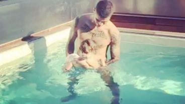 En la publicación de Instagram del delantero hubo debate: entre los cientos de comentarios hubo usuarios que lo atacaron por pensar que la había sumergido de manera agresiva, y otros que aclararon que de ese modo se ayuda a los más pequeños a nadar.