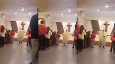 En el video, que fue filmado por uno de los asistentes y subido a la redes sociales, se puede ver al cura cantar y bailar al ritmo del tema de moda, mientras los fieles celebran la ocurrencia.