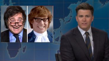 En el momento de las "noticias", el programa comparó a Milei con el excéntrico Austin Powers, el ficticio espía británico creado Mike Myers en tono de parodia.