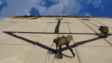 El símbolo que permanece incólume emula un barco de frente con su vela, visto desde la proa, en un trazo simple con pintura negra a mano alzada por pintores desde altura. Sus propietarios, herederos de aquella industria frigorífica, habían dado el permiso al realizador rosarino para pintarlo, ya que tenían planeado demolerlo un mes después para levantar otro emprendimiento. Pero finalmente nunca lo hicieron, y la misteriosa insignia continúa hasta estos días custodiando la plaza.