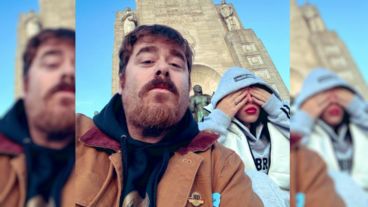 La recorrida de Migue por la ciudad siguió en el Monumento Nacional a la Bandera, donde posó acompañado por Nicki Nicole.