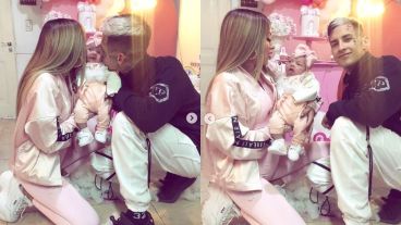 El miércoles la beba cumplió su primer mes de vida, y ambos decidieron celebrarlo a lo grande con una mesa dulce acorde para la ocasión: varias tortas, decoración en distintos tonos de rosa, carteles luminosos y varias exquisiteces dulces.