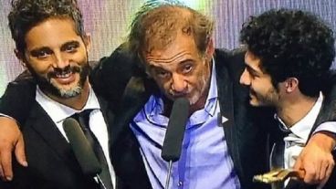 Según publicó hoy Teleshow, el actor recibió el máximo premio por su papel en "Historia de un Clan". Como es costumbre, subió al escenario para recibir la estuilla. Generoso y buen compañero, invitó a que lo acompañen quienes compartieron la terna con él: Joaquín Furriel y "El Chino Darín" (Julio Chávez estuvo nominado pero no presente).