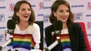 Natalia Oreiro viajó a Rusia para promocionar la canción mundialista “United by love”. Invitada a una entrevista en la radio nacional de ese país, la cantante uruguaya asistió con un suéter que replicaba en el pecho la bandera con los colores que representan al colectivo LGBTTIQ+.