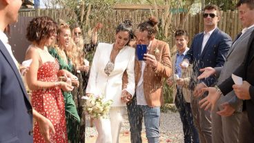 Cerca de las 13, el matrimonio llegó en auto, ya luciendo las alianzas en el dedo anular, y saludaron a los presentes antes de ingresar al lugar que eligieron para reunirse con su círculo íntimo en el partido bonaerense de Tigre.