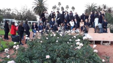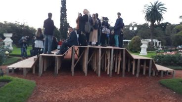 La obra de la artista rosarina Laura Glusman “Un lugar para mirar. Jardín de rosas” se montó este martes en un parque de Buenos Aires.