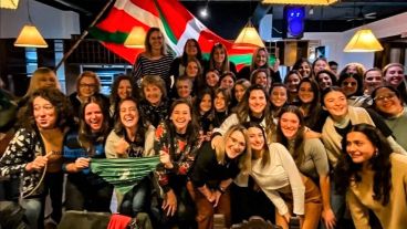 Itziar mostró todos sus dotes de danza y también se fotografió con los miembros del centro vasco rosarino, ubicado en calle Entre Ríos al 200.
