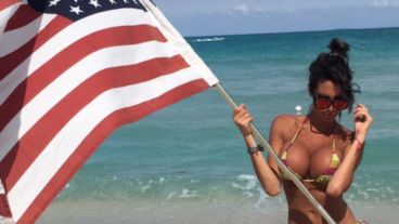 Sus últimas imágenes en Estados Unidos también trajeron cola: la rubia posó desnuda en la playa de Miami con la bandera de las barras y las estrellas y puso en llamas el mar.