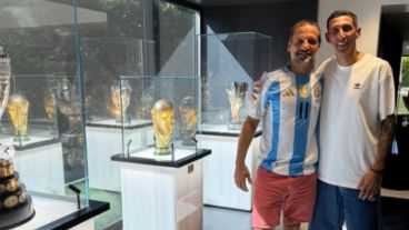 Este jueves, Ángel Di María sorprendió en redes sociales al mostrar la visita que recibió en su casa. Se trata de Rodrigo de la Serna quien se acercó a charlar con la familia y recorrió el sector de la casa donde “Fideo” guarda sus trofeos, medallas y camisetas.