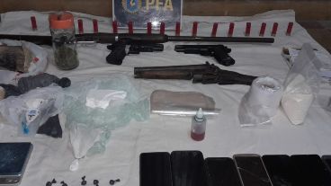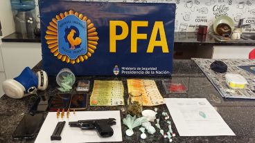 En los distintos domicilios en los que irrumpió la Policía Federal se secuestraron 3,5 millones de pesos, 7.500 dólares, cinco armas de fuego, celulares, chips, 700 gramos de marihuana, cocaína fraccionada para la venta y municiones de distintos calibres.