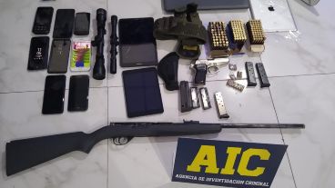 Además de eso, desde la AIC informaron que también se encontró una máquina de contar billetes, dos handies, miras para distintos tipos de armas y 6 teléfonos celulares junto con otros dispositivos electrónicos.