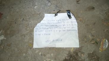 Concretamente, uno de los mensajes que dejaron los agresores fue el siguiente: “No batas la cana porque te sabemos todos los movimientos. Si no querés que te matemos a tu mujer y tu hijo, no la batas. Ya sabemos que los dos están en cana y lo que se mandaron. Y van a pagar. Atte: la mafia”.