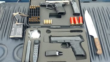 El agresor fue reducido y esposado. Y luego, en el marco del procedimiento, se accedió al auto familiar y se encontraron dos pistolas. Según precisó Santamaría, se trata de una calibre 380 y otra de calibre 40, “de alto poder de fuego, aptas para disparos y con municiones”.