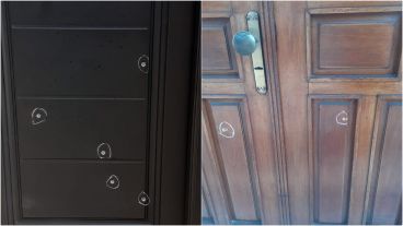 La puerta negra de Regimiento 11 al 1158 recibió 7 impactos. Segundos antes, la vivienda contigua, donde vive una pareja de jubilados, fue blanco de dos tiros.