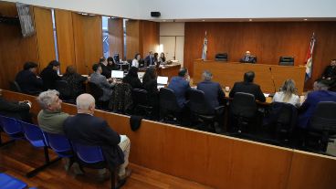 Ningún imputado estaba en la sala este martes. Todos participan por videoconferencia para evitar traslados por seguridad. Se estima que la audiencia hoy se extienda hasta las 14 y este miércoles se reanude de 14 a 19.30. Según la información disponible en la Oficina de Gestión Judicial, la audiencia estará a cargo del juez penal de primera instancia Gustavo Pérez Urrechu.