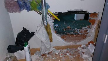 La periodista Almudena Munera informó en De 12 a 14 (El Tres) que este jueves, los responsables de la financiera fueron a radicar la denuncia y albañiles ya reparaban la ruptura de la pared.